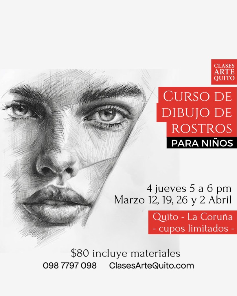 En este curso de 4 jueves, 5 a 6 pm, aprenderás a dibujar rostros de una forma más realista.