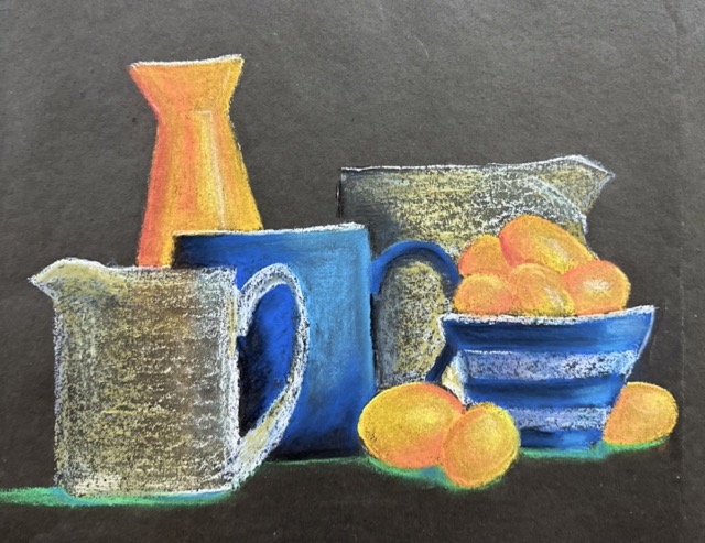 Esto es entre dibujo y pintura, con los pasteles iremos descubriendo la forma, profundidad y con el uso de valores y colores iremos dando ambiente y sensación. Experimentaremos con los 2 pasteles secos y grasos y decidirás cuál es el que se adapta más a ti.