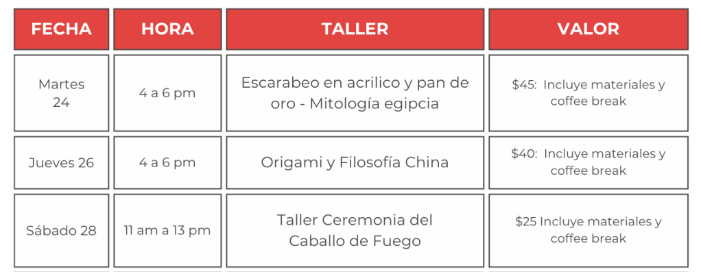Todos los talleres incluyen materiales, un café delicioso, aguas aromáticas y snacks.